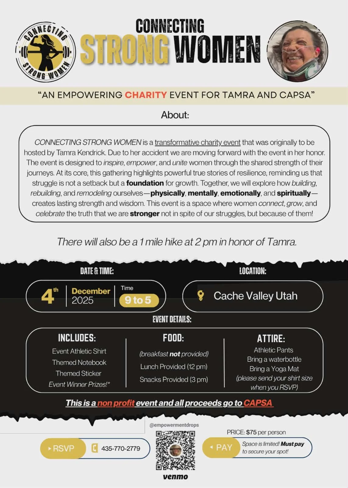 AN EMPOWERING CHARITABLE EVENT. Hosted by Tamra Kendrick’s friends. All proceeds go to CAPSA for abused women and children.