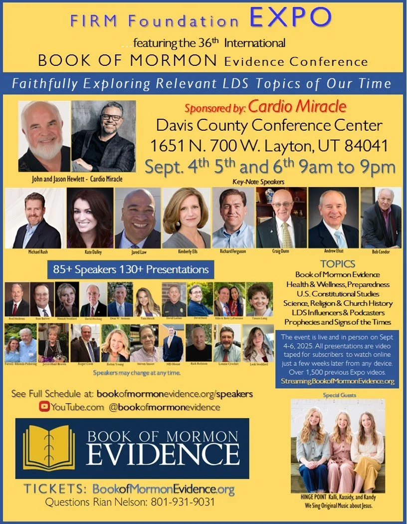 Tamara’s class Friday at 7:15 pm is “The Light of Christ Heals - Draw Upon It.” Guy’s class Sat. at 4:25 pm is “Valiant Women - Disciples of Christ” Full schedule bookofmormonevidence.org/speakers